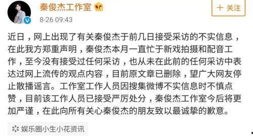 最近娱乐圈可是热闹非凡啊!吃瓜群众们纷纷拿出小本本,记录下每一个细节。今天,咱们就来聊聊那位备受关注的秦俊杰,看看他到底发生了什么。